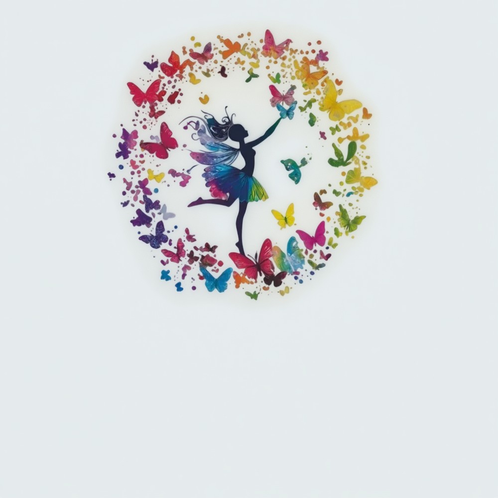 - Motif coloré : danseuse de ballet encerclée de papillons